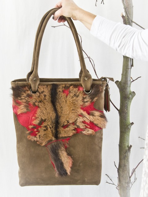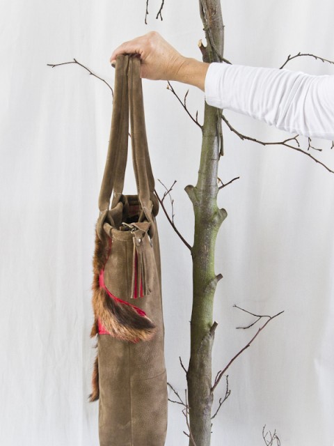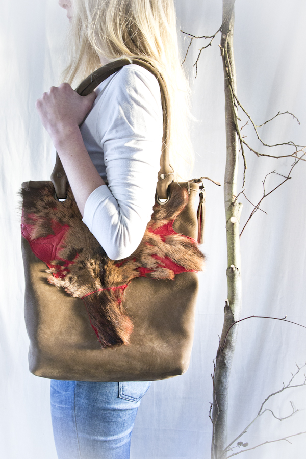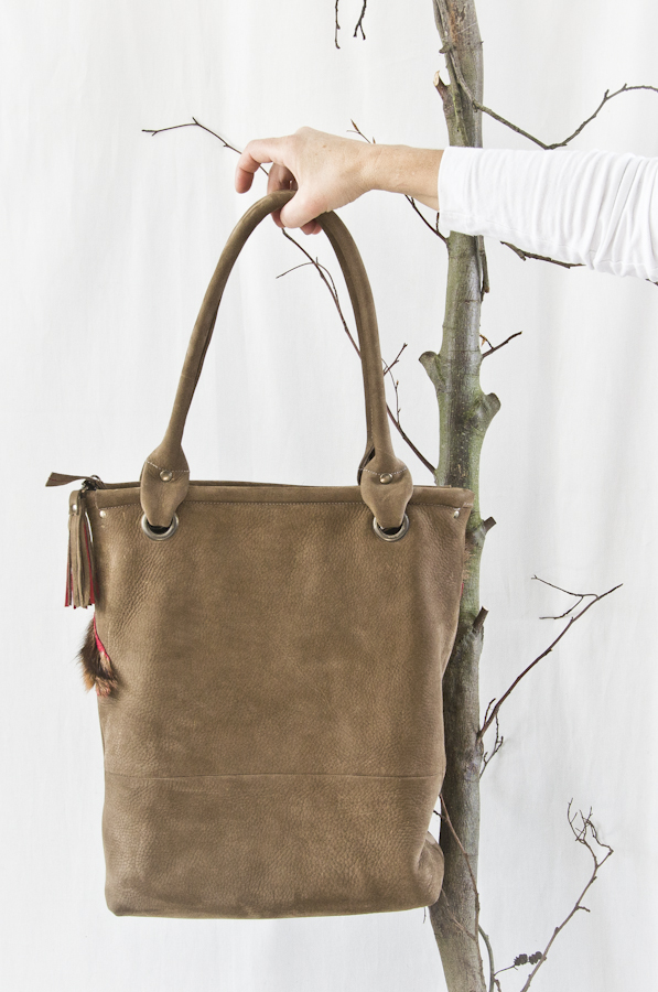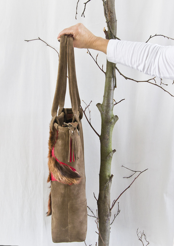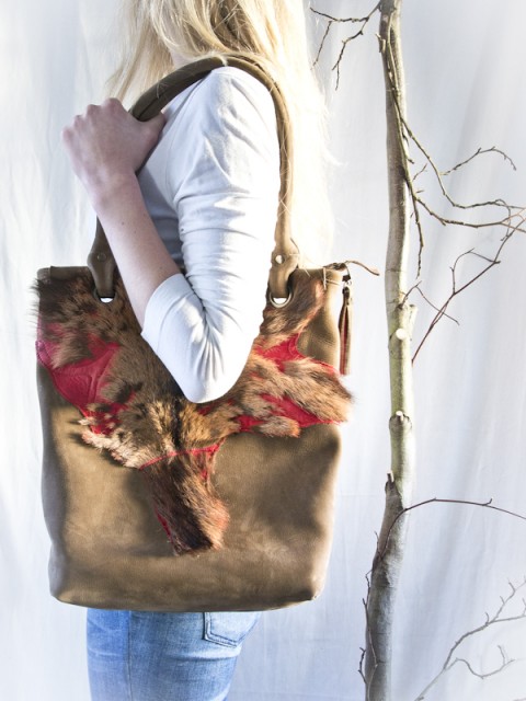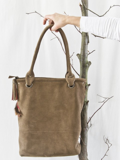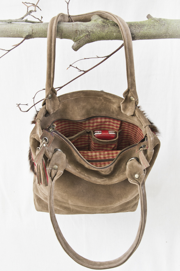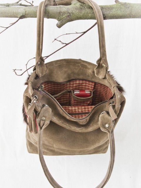 Deze tas heeft als basis model Milano maar heeft geen lange riemen en is dus alleen als grote shopper/werktas te gebruiken. Dit omdat de voorkant speciaal is gemaakt en doorgestikt op het geverfde geitenvachtje. De achterkant is effen bruin nubuck leer. Maar……… er zijn natuurlijk vele andere kleurcombinaties denkbaar. Ook deze tas wordt in eigen atelier gemaakt dus ook jouw eigen kleurcombinatie is mogelijk.
